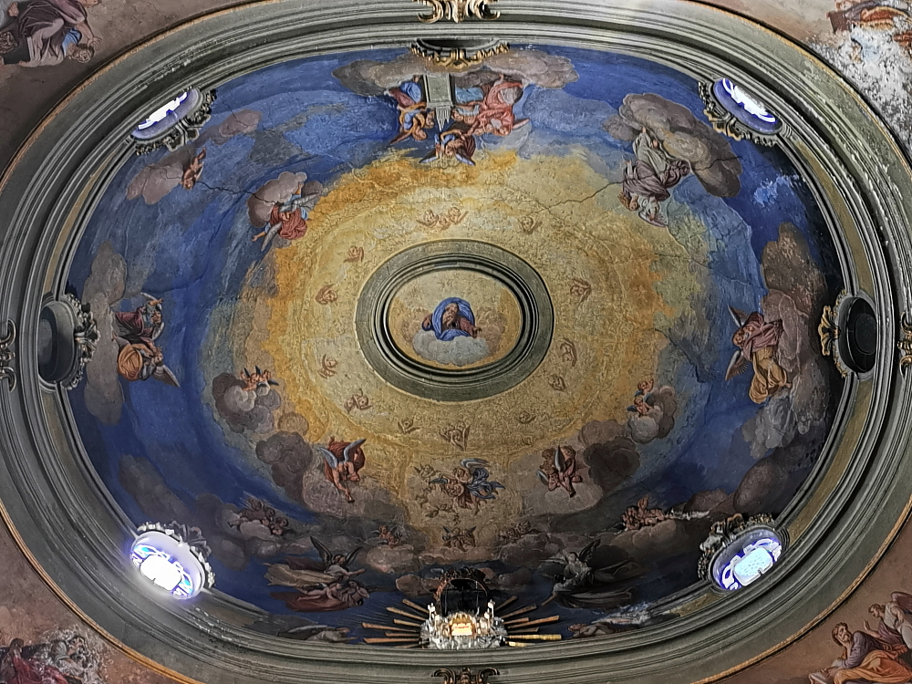 Знакомство с городом начнем с колледжиаты Сан Витторе, тем более мы и запарковались рядом. Визуально храму от силы пару веков, хоть и стоит он на фундаменте древнеримской базилики. Его колокольня хорошо видна со многих точек прилегающих улочек: